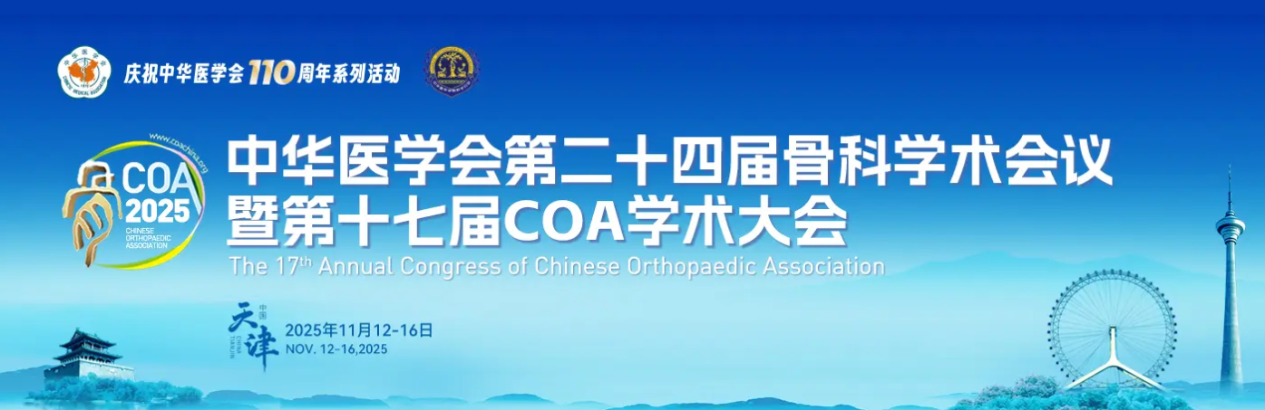 The 24th Orthopaedic Academic Conference of the Chinese Medical Association and the 17th COA Academic Congress (COA2025), organized by the Chinese Medical Association and its Orthopaedic Surgery Branch, hosted by the Tianjin Medical Association, and co-organized by the Second Affiliated Hospital of Xi’an Jiaotong University and Tianjin Hospital, will be held from November 12–16, 2025, in Tianjin.