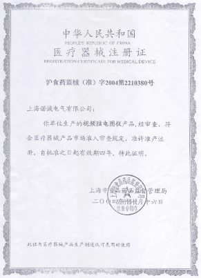 Description: It shows that this model obtained an official Medical Device Registration Certificate in 2004 and is a clinically-grade device approved by the regulatory authority.