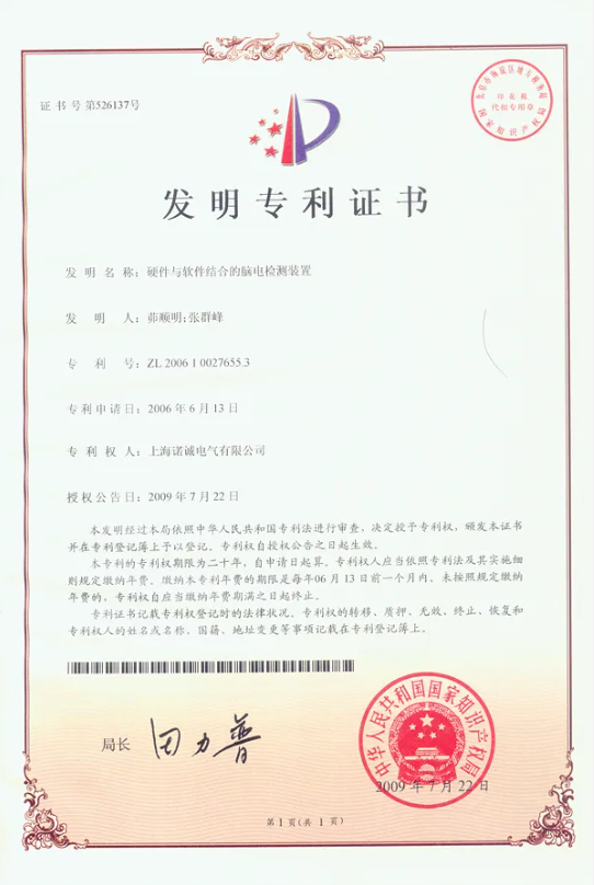 NCC MEDICAL's first wireless Bluetooth video EEG system filed a patent in 2003 (Patent No.: CN2604152Y) and obtained clinical registration approval from Shanghai Food and Drug Administration in 2004.